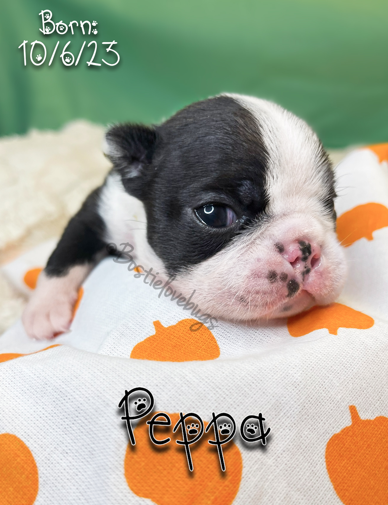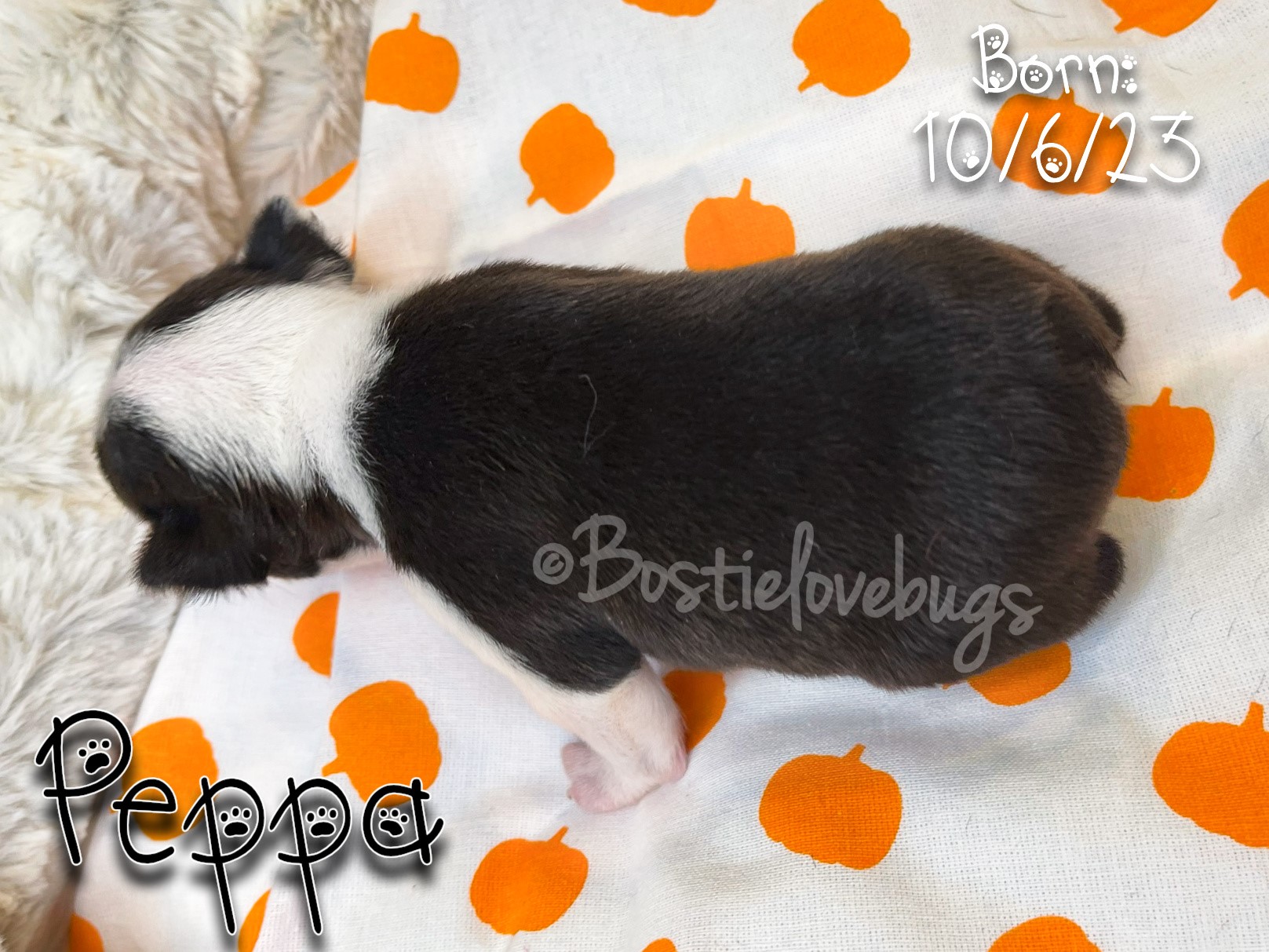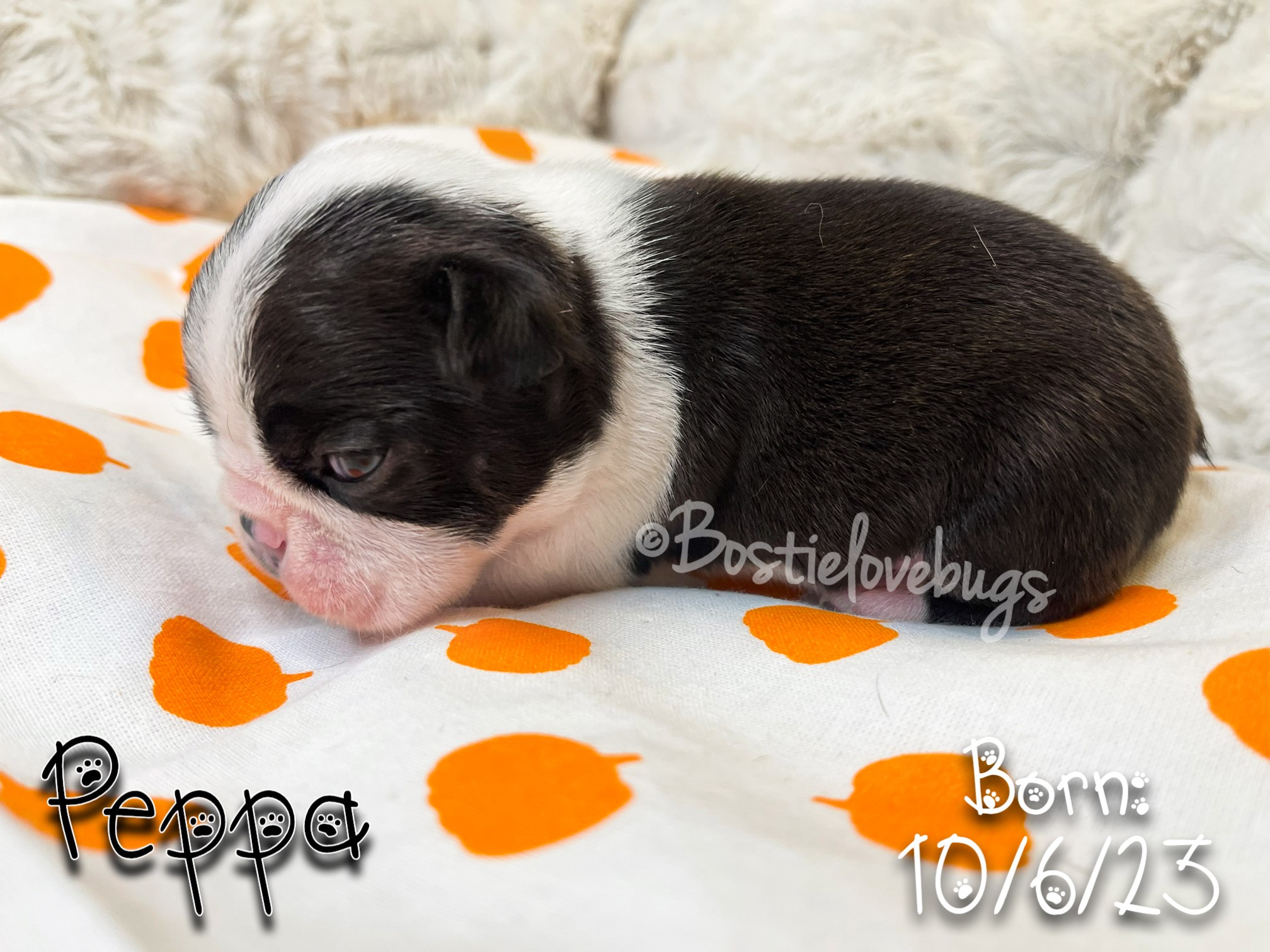 Personality: She was the first to start walking and don’t let her tiny size fool you, dynamite comes in small packages! This little lady is fearless and full of love. She would kiss you until the sun goes down if she could. We expect her to be around 10-12 lbs.